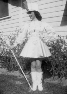 Once in high school, though, the family became more settled and she came into her own in music, writing, and performance. Her father was a member of the American Legion, Post No. 14, in St. Petersburg, and likely had a hand in her becoming a drum majorette of the Legion’s Drum and Bugle Corps. Parades and patriotic assemblies were prominent activities of the war years.