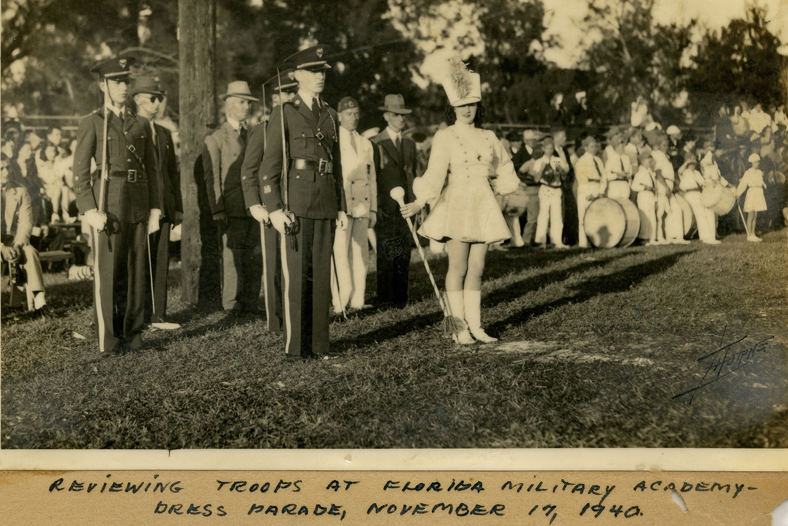On November 17, 1940, I received a very nice honor. I reviewed the troops at Florida Military Academy, the first girl that had ever been allowed to do this and receive such an honor.