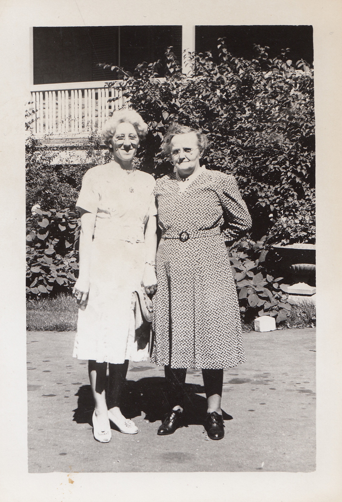 We don’t know the years for these photos but they show Blanche in the same dress. After all their years of caring for children in the families, one hopes that they both got some time to rest in their later years—the porch behind them looks like a nice one for that.