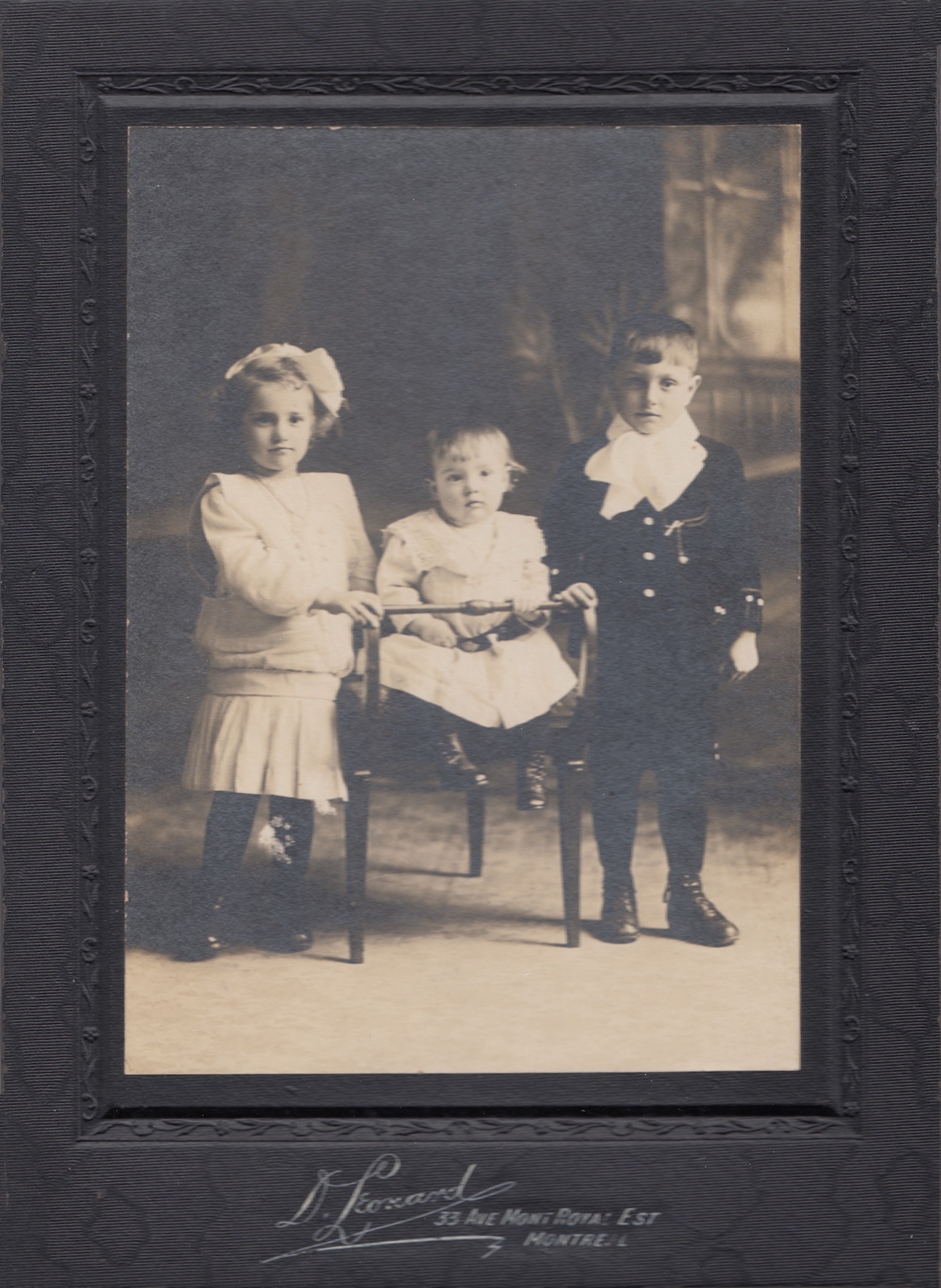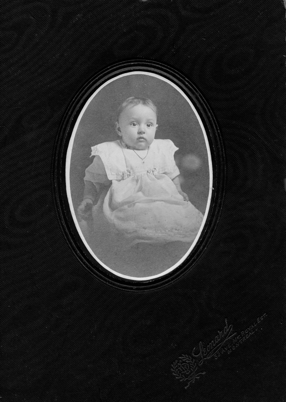 A beautiful studio photo of the young family of Albert and Blanche Labelle Pepin, with Paul Emile to the left and Lucien to the right in what might be a christening dress although babies at that time were almost always baptized on the same day or very soon after birth and Lucienne looks several months older.