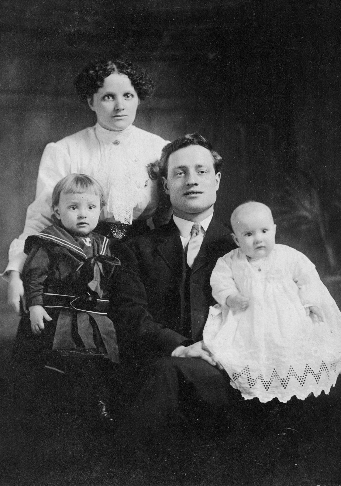 Another studio photo of the young family—Paul Emile, Lucienne, and Ernest in the center between them—possibly in 1917.