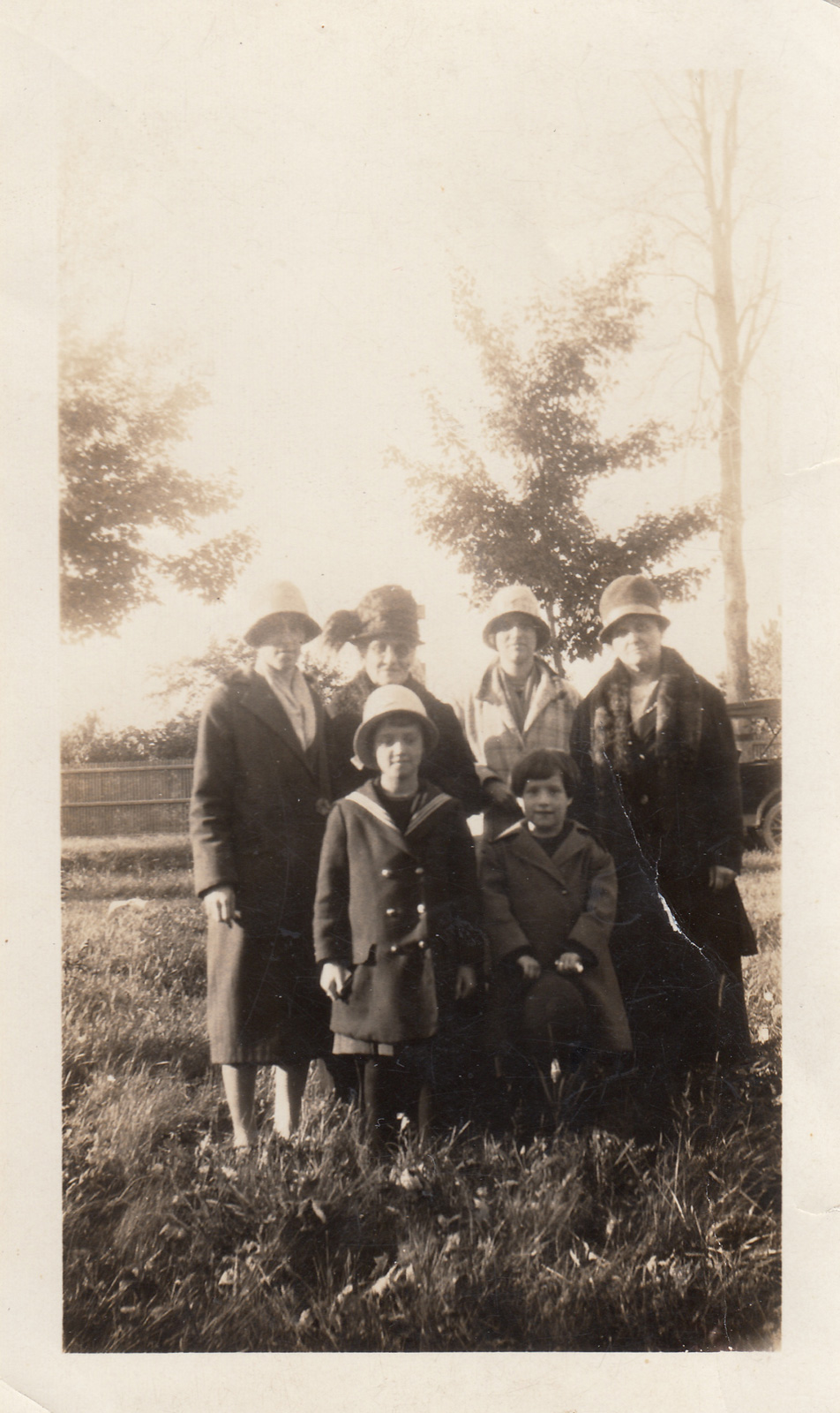 This photo is exceptional because it likely includes, left to right in back: Aline, Elodie, Lucienne, Blanche; and in front: Marguerite and Therese.